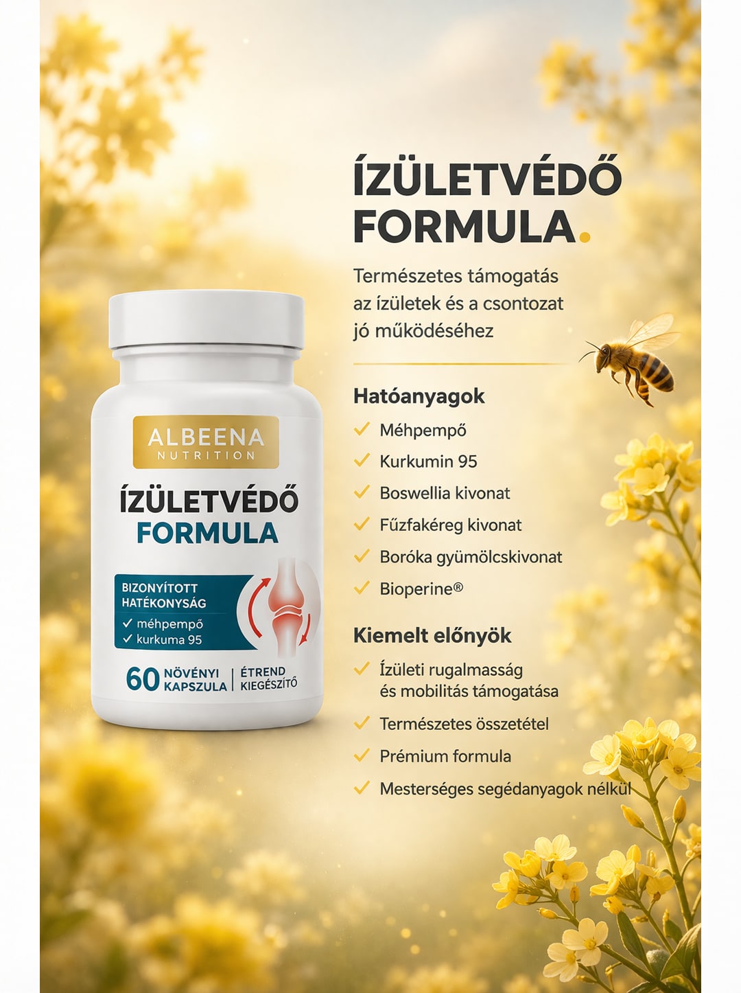 Az Albeena Nutrition termékcsalád – Ízületvédő FORMULA méhpempőt és kurkumin 95-öt tartalmazó étrend-kiegészítőt kifejezetten a csontok és ízületek jó működésének támogatására fejlesztették ki.